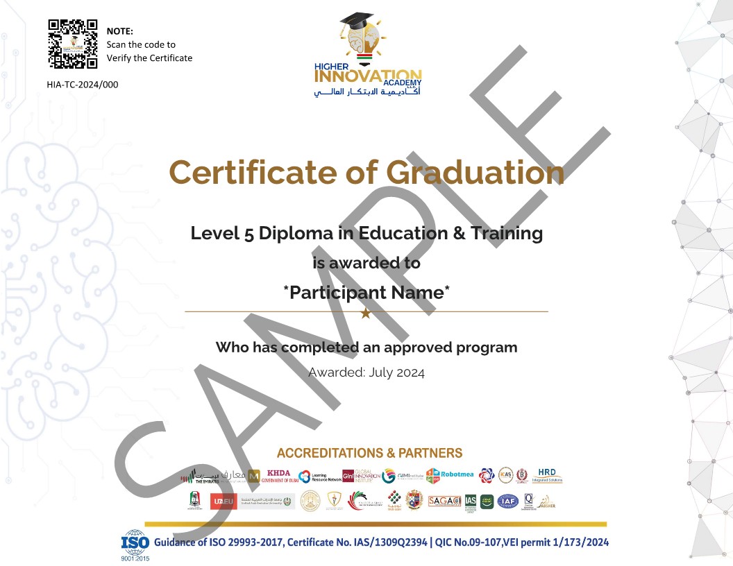 ﻣﺆﻫﻞ ﺗﺪرﻳﺲ ﻣﻌﺘﻤﺪ ﻣﻦ ﻫﻴﺌﺔ اﻟﻤﻌﺮﻓﺔ واﻟﺘﻨﻤﻴﺔ اﻟﺒﺸﺮﻳﺔ وﻣﻌﺘﻤﺪ ﻣﻦ NQC و OFQUAL ﻟﺘﺄﻫﻴﻞ اﻟﻘﺎدة واﻟﻤﺮﺑﻴﻦ ﻓﻲ اﻟﻤﺴﺘﻘﺒﻞ.